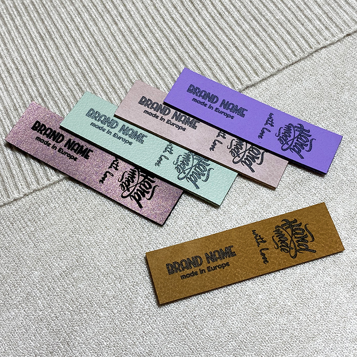 Étiquette personnalisée EP-M167 en cuir artificiel pour vêtements, sacs, chaussures et divers accessoires vestimentaires.