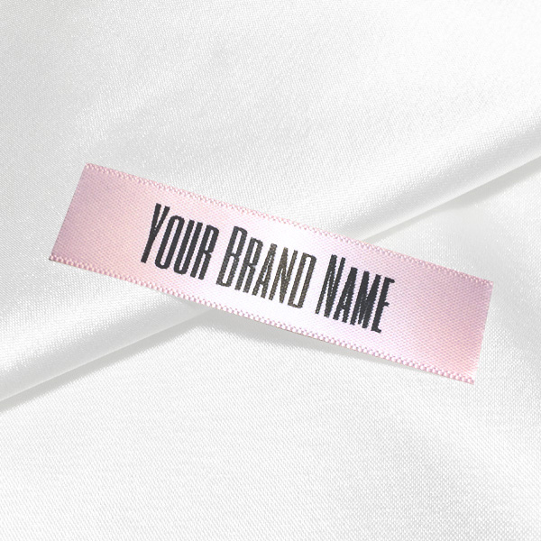 Etiquette personnalisée TL-M57 imprimé sur du textile satiné adapté à vêtements et articles divers.